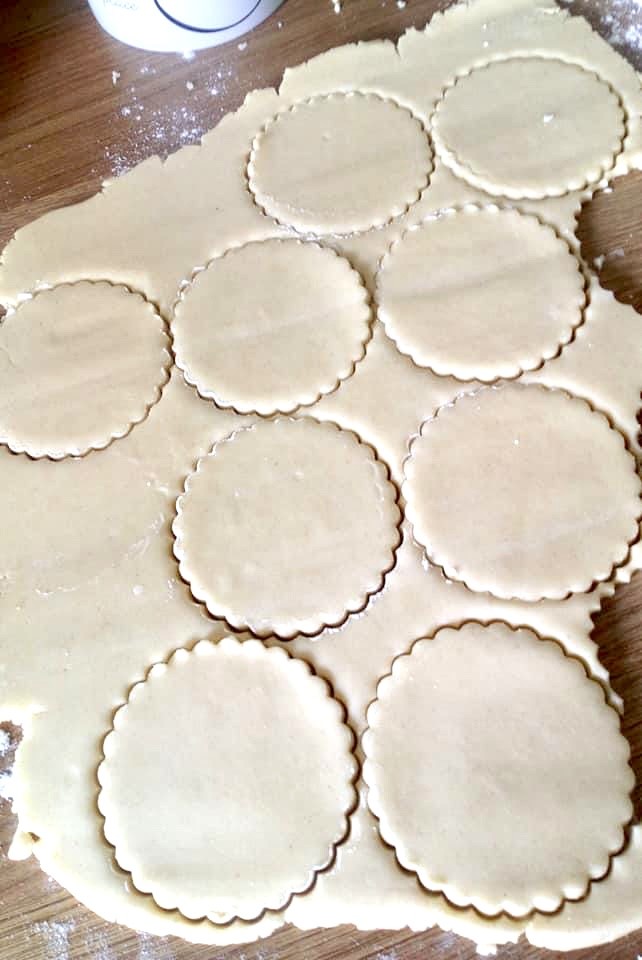 dough out to around 3mm thick. Cut rounds from the