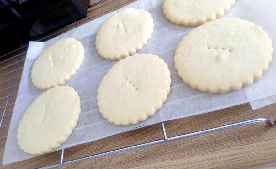- Transfer the biscuits onto the baking tray.
